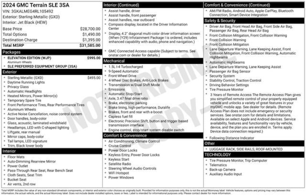 Used 2024 GMCTerrain SLE SUV Turbo 4-cylinder engine